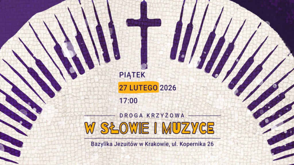 W piątek 27 lutego 2026 roku o godz. 17:00 w bazylice Jezuitów w Krakowie (ul. Kopernika 26) odbędzie się wyjątkowe spotkanie słowa i muzyki, prezentujące klasyczną formę Drogi Krzyżowej w nowej, artystycznej odsłonie. Wydarzenie łączy tekst literacki, interpretację aktorską oraz muzykę organową, tworząc przestrzeń refleksji i uważnego odbioru. Owo swoiste misterium będą współtworzyć: organista Marek Stefański, aktor Piotr Cyrwus oraz autor rozważań Jarosław Naliwajko SJ. Projekt ma charakter otwarty i skierowany jest do wszystkich zainteresowanych…