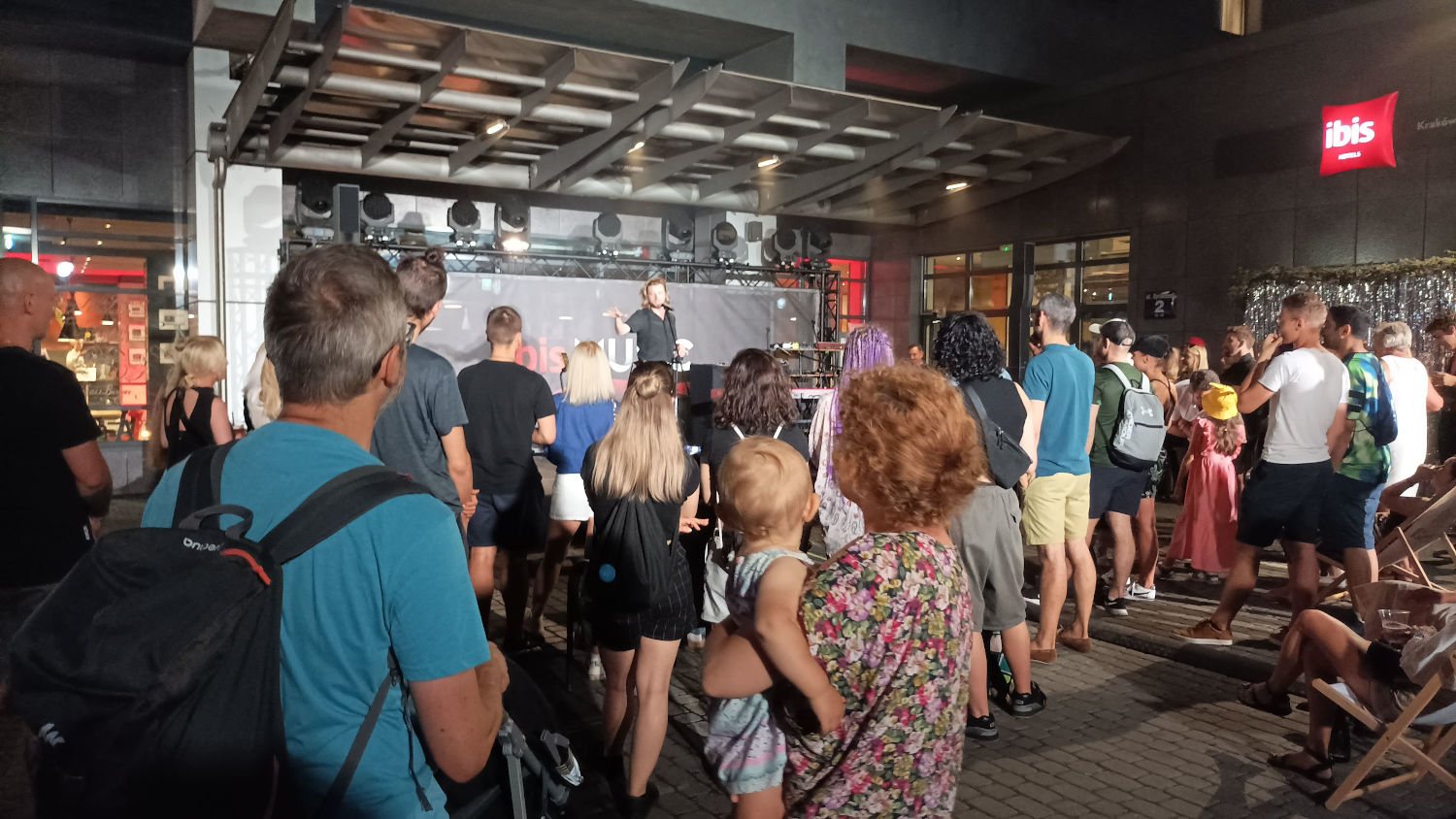 Na dziedzińcu hotelu Ibis Kraków Centrum, 19 sierpnia 2023 wystąpili: