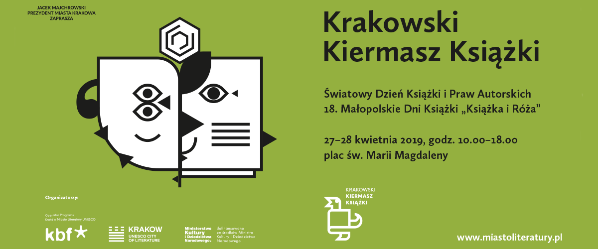 Po raz kolejny Krakowski Kiermasz Książki stanie się częścią obchodów Małopolskich Dni Książki „Książka i Róża”, organizowanych przez Województwo Małopolskie i Wojewódzką Bibliotekę Publiczną w Krakowie. Idea akcji – przeszczepiona ze słonecznej Barcelony, partnera Krakowa w Sieci Miast Literatury UNESCO, która z okazji dnia św. Jerzego od lat staje się wielką księgarnią pod gołym niebem – od lat przyjęła się w stolicy Małopolski oraz w licznych księgarniach i instytucjach kultury z całego regionu. Obok stoiska na Krakowskim Kiermaszu Książki organizatorzy zapraszają m.in. na warsztaty kulinarne z Darią Ładochą, grę miejską „Znajdź sobie książkę”, scrapbooking czy spacer literacki. W niedzielę 28 kwietnia w Wojewódzkiej Bibliotece Publicznej odbędzie się również specjalna edycja bezpłatnej akcji wymiany książek Drugie Życie Książki. Już tradycyjnie upominki książkowe otrzymają pasażerowie i pasażerki Kolei Małopolskich, a na miasto wyjedzie rower Lotnej Czytelni z Różą, który odwiedzi także Krakowski Kiermasz Książki.