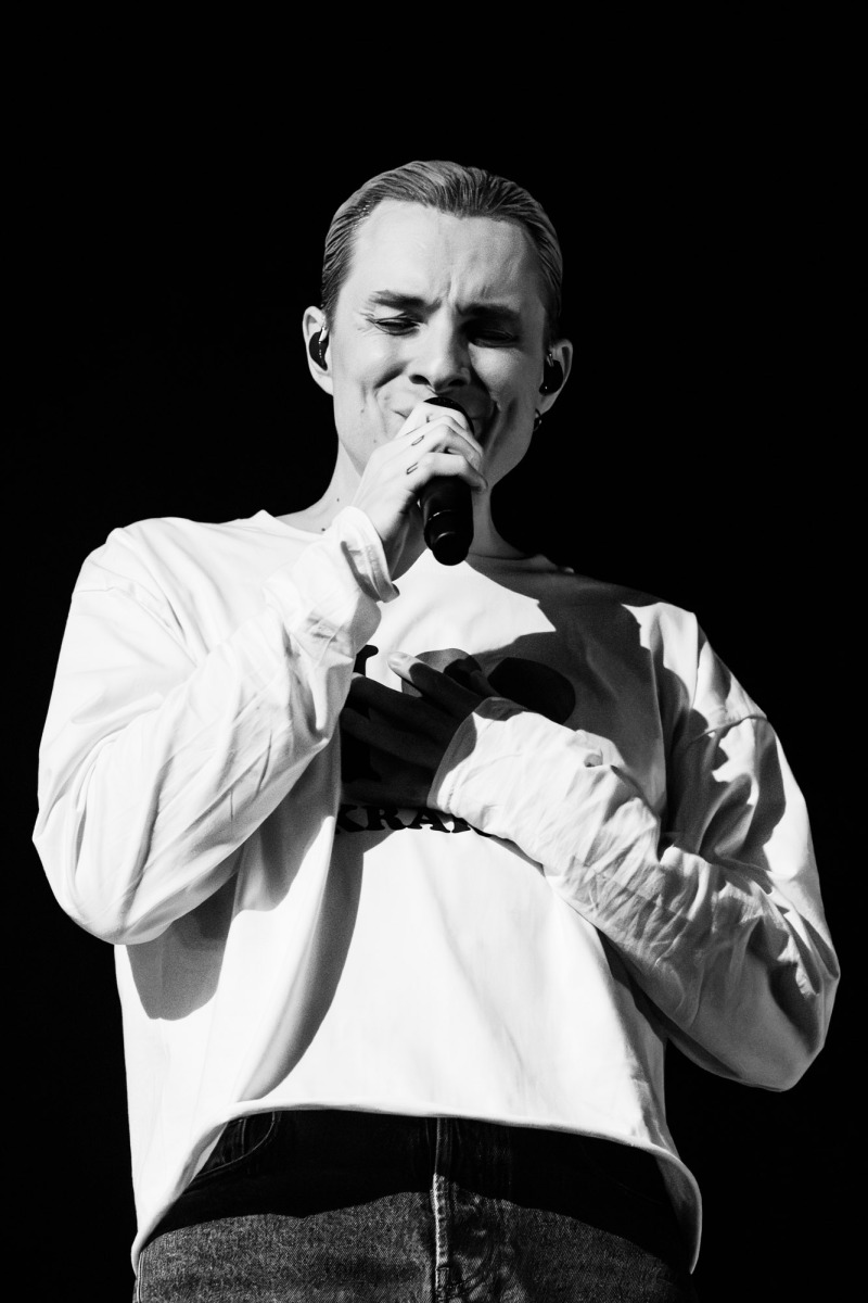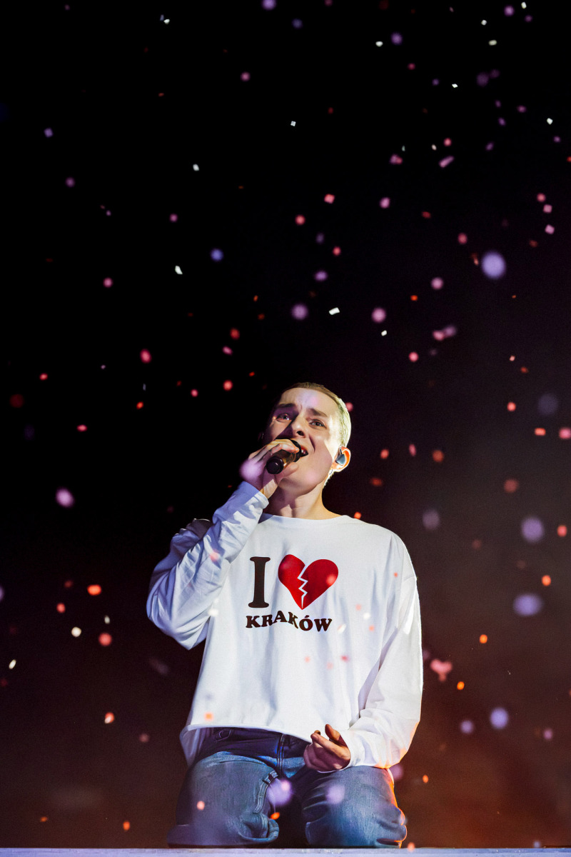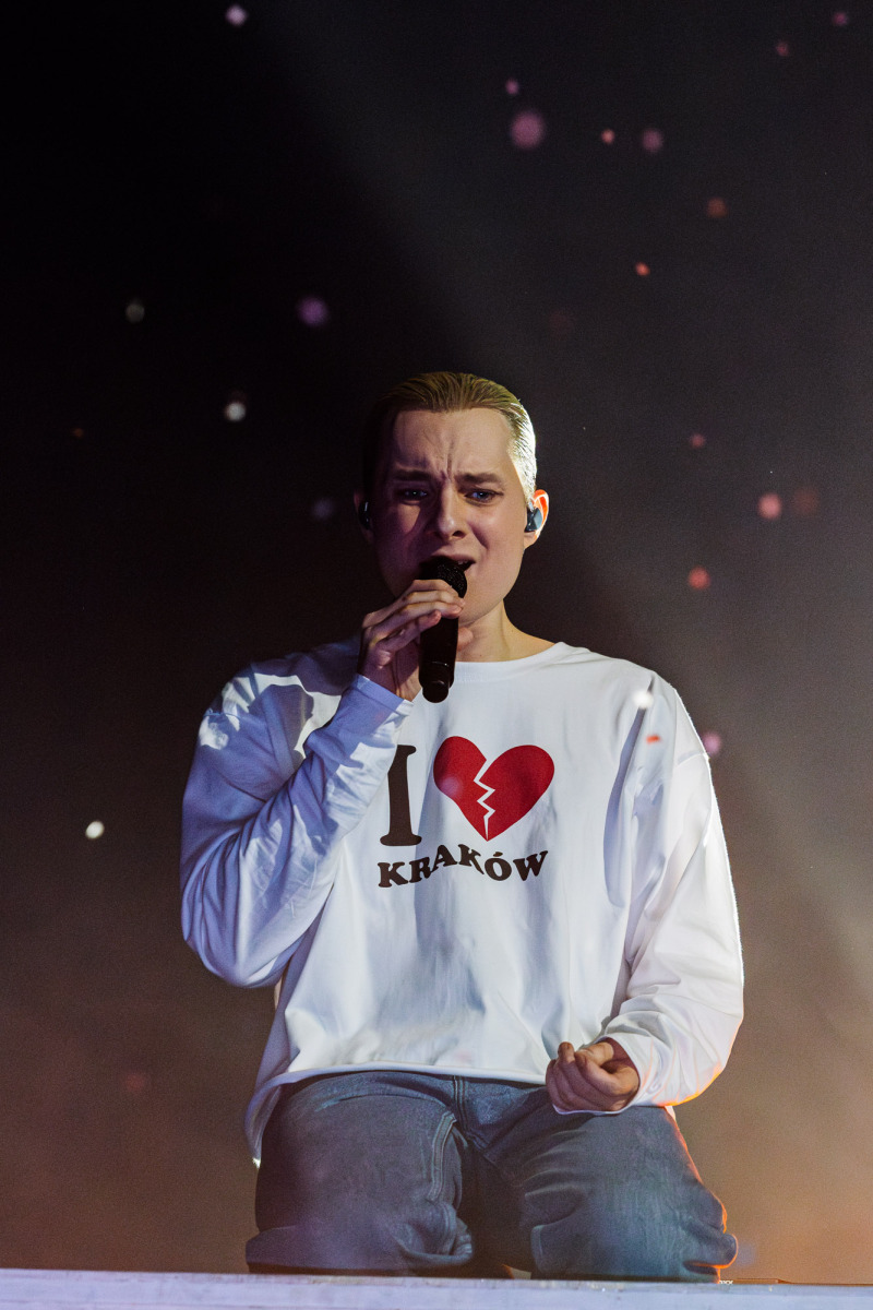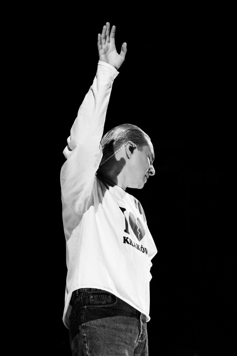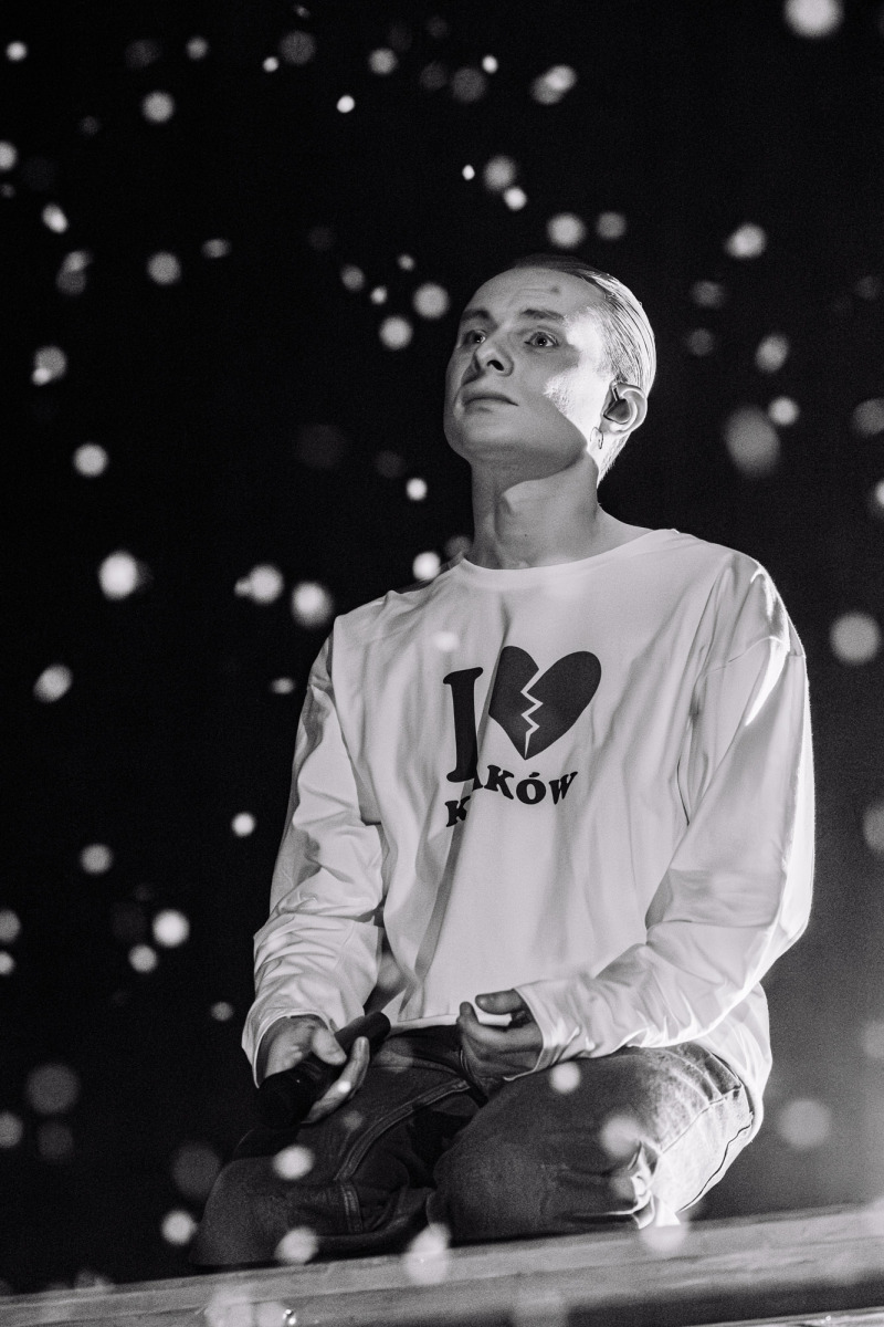 Na scenie stała tęcza — prosty element scenografii, który nie próbował kraść uwagi, tylko naturalnie wpisał się w koncertowy krajobraz. Była obecna przez cały występ i szybko przestała być „scenografią”, a stała się częścią całości.