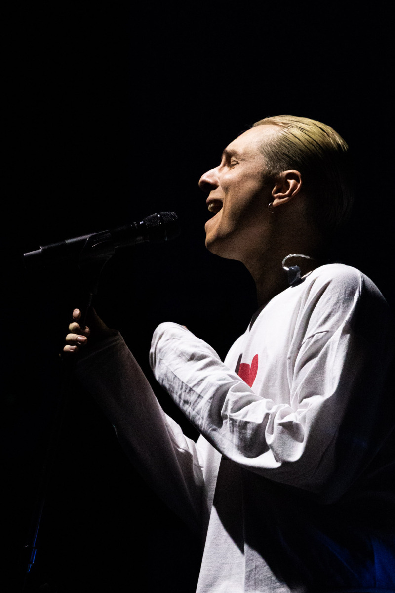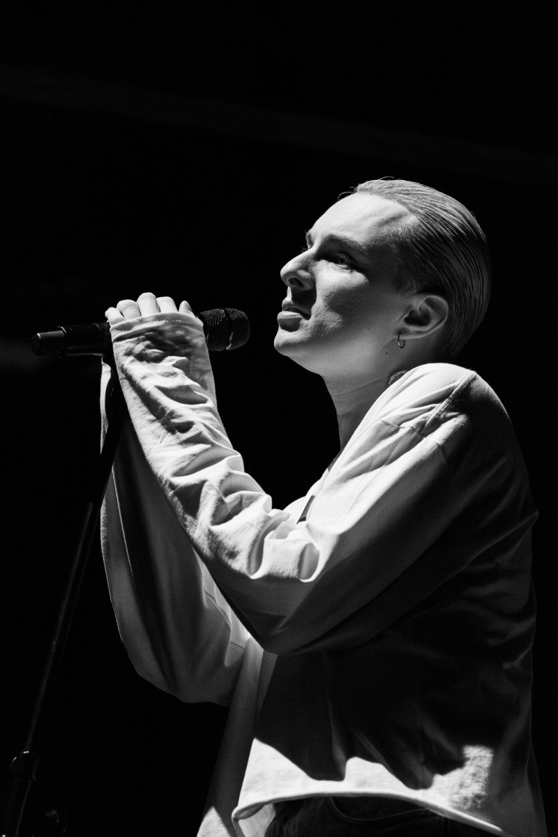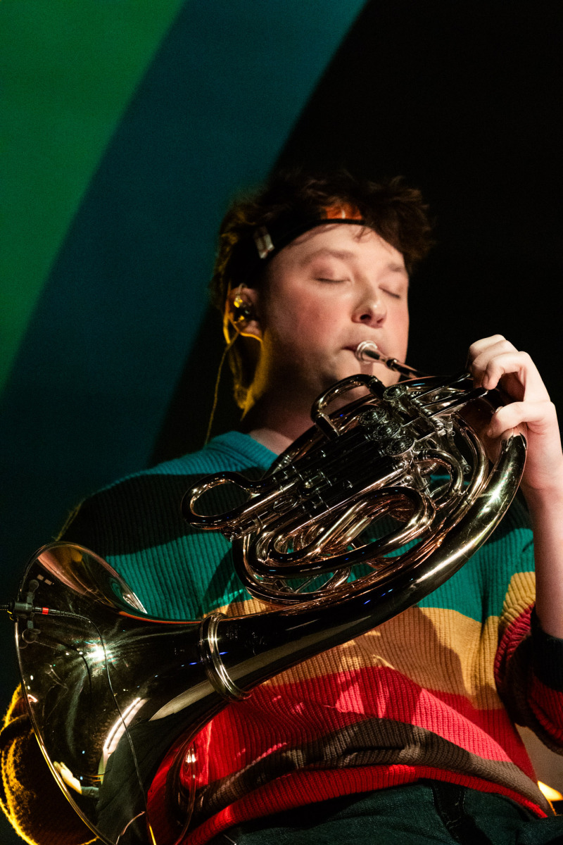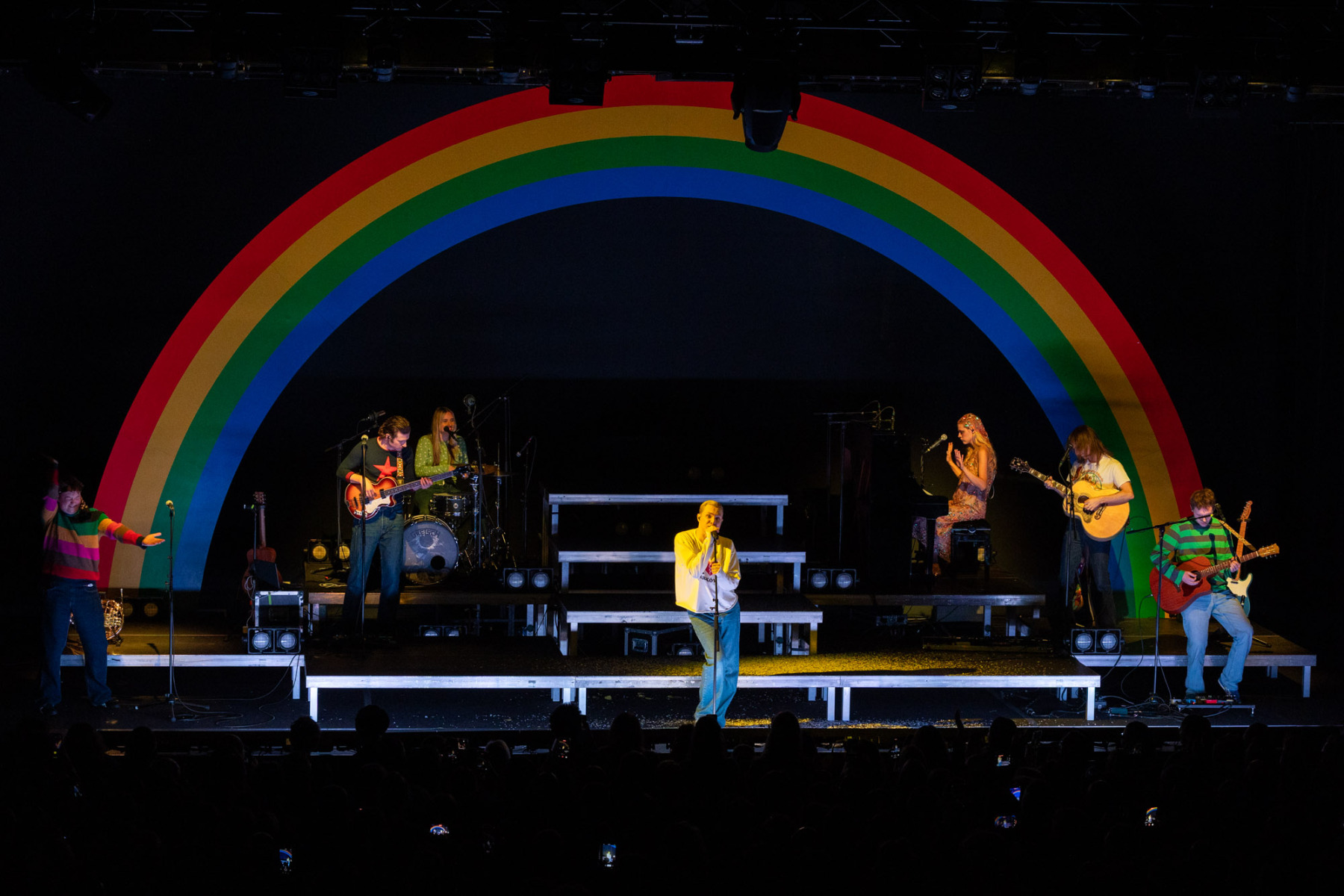 Na scenie stała tęcza — prosty element scenografii, który nie próbował kraść uwagi, tylko naturalnie wpisał się w koncertowy krajobraz. Była obecna przez cały występ i szybko przestała być „scenografią”, a stała się częścią całości.
