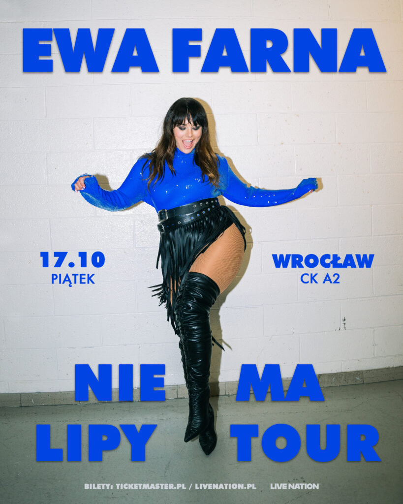 Ewa o trasie: Nie mogę się doczekać swojej największej klubowej trasy! No nie ma lipy! Zresztą kto wie ten wie – na moich koncertach nigdy nie ma lipy, bo mam najlepszą publiczność, kocham to co robię i bawimy się świetnie! Zawsze! Zdarzyło się, że raz wystąpiłam i była lipa, ale to była Dua Lipa – ta gwiazda z UK. Jednak u mnie na trasie jej nie będzie. Ani Lipy ani lipy! Za to będzie supermuzycznie – obiecuję, a wy mnie sprawdźcie – październik 2025 w 7 miastach Kraków, Poznań, Łódź, Wrocław, Warszawa, Gdańsk, Katowice! EWA FARNA x LIVE NATION NIE MA LIPY TOUR 2025
