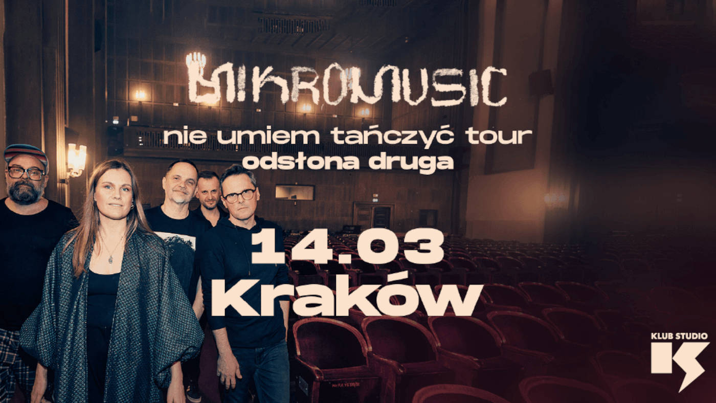 Klub STUDIO Witolda Budryka 4, Kraków, PolandWyjątkowy album równa się wyjątkowe koncerty. „Nie umiem tańczyć tour” to naturalne przedłużenie muzycznego świata najnowszej płyty Mikromusic i zaproszenie do doświadczenia jej na żywo. Dla koneserów awangardowego polskiego popu […]