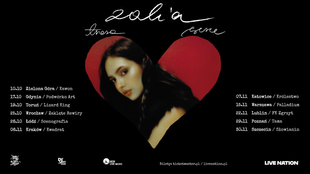 Po spektakularnym sukcesie wiosennej trasy koncertowej Z SERCA, ZALIA – jedna z najbardziej wyrazistych i utalentowanych artystek młodego pokolenia – ogłasza kolejną odsłonę swojego muzycznego projektu. Jesienią 2025 roku wokalistka wyruszy w trasę SERCE, która obejmie jeszcze więcej miast i większe sale koncertowe, odpowiadając na ogromne zainteresowanie i entuzjazm fanów.